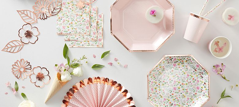 DITSY FLORAL - FRÅN GINGER RAY! Underbara och lyxiga festdekorationer i en blandning av blommor, roséguld och vitt som passar till de flesta tillställningar.