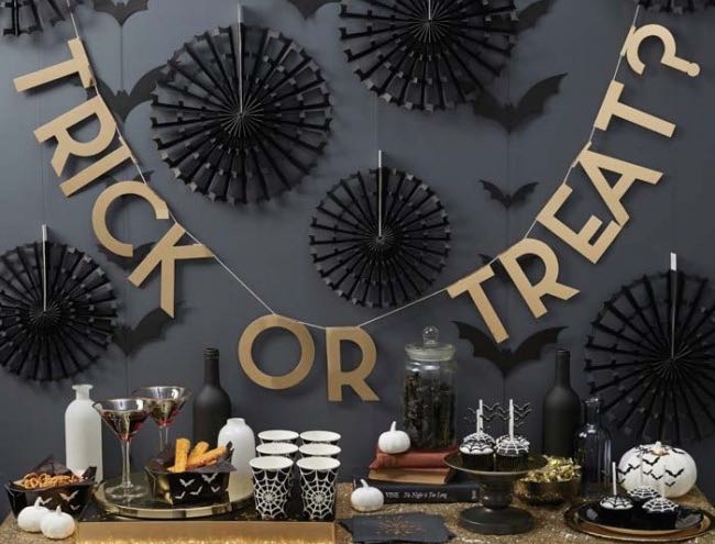 TRICK OR TREAT? FRÅN EXKLUSIVA GINGER RAY - sätt stämningen på Halloweenfesten och skräm slaget på dina gäster med dessa läskiga och glammiga girlanger, fladdermöss och spindelfläktar! En kuslig serie som garanterat kommer att älskas av alla åldrar.