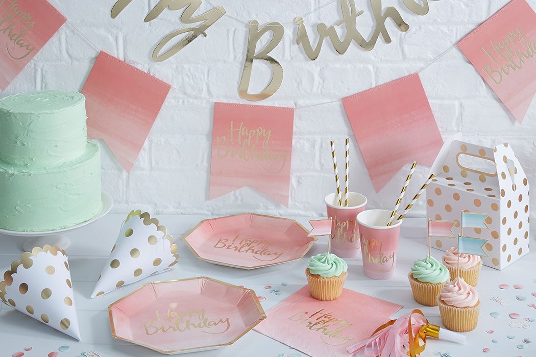 Gold Foiled Pink Ombre Happy Birthday Paper Plates - Pick & Mix
