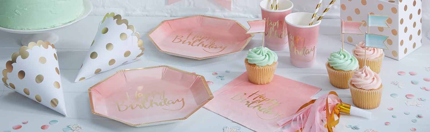 Gold Foiled Pink Ombre Happy Birthday Paper Plates - Pick & Mix