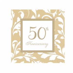 Gold 50th Anniversary Elegant Scroll Luncheon Napkins