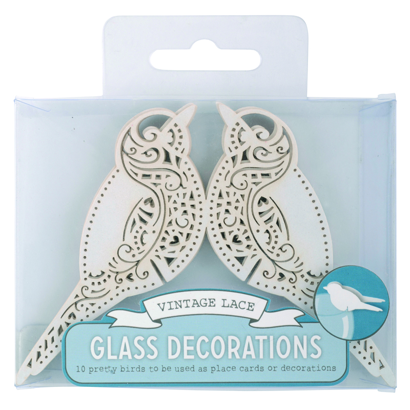 Bird Place Card for Glass White - Vintage Lace