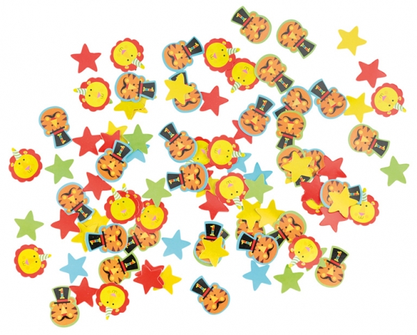 Bedårande konfetti i större format med 1:or, lejon, tigrar och stjärnor i blått, grönt, gult och rött. Denna söta konfetti passar perfekt som dekoration på borden, vid buffén eller som överraskning i dina inbjudningar. Perfekta på första födelsedagen.