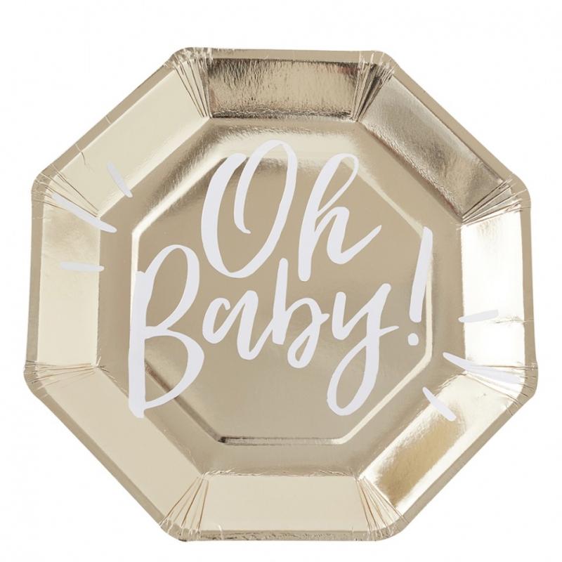 Gold Foiled Oh Baby! Paper Plates - Oh Baby!