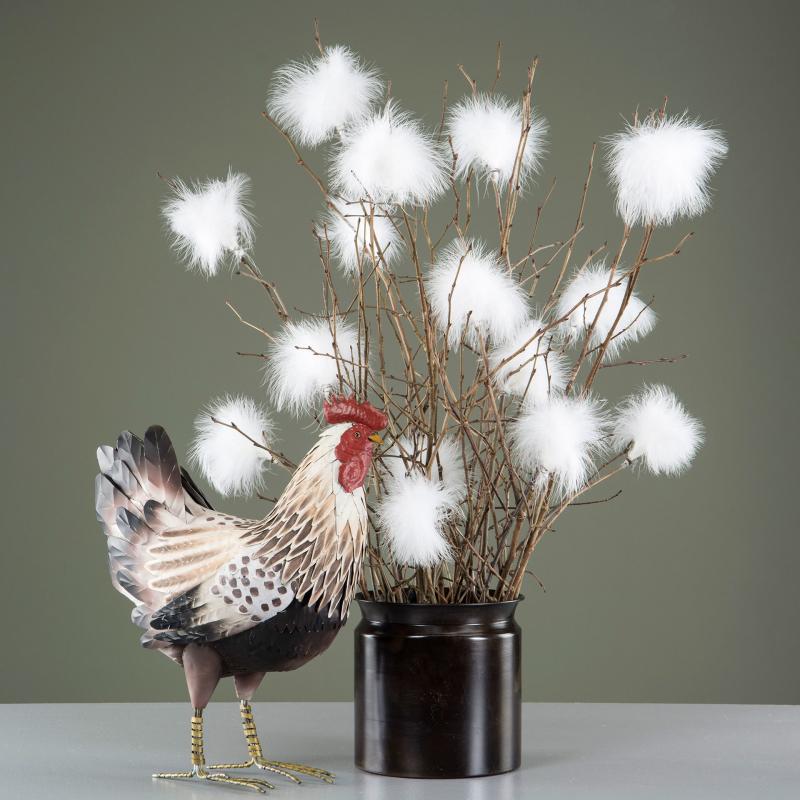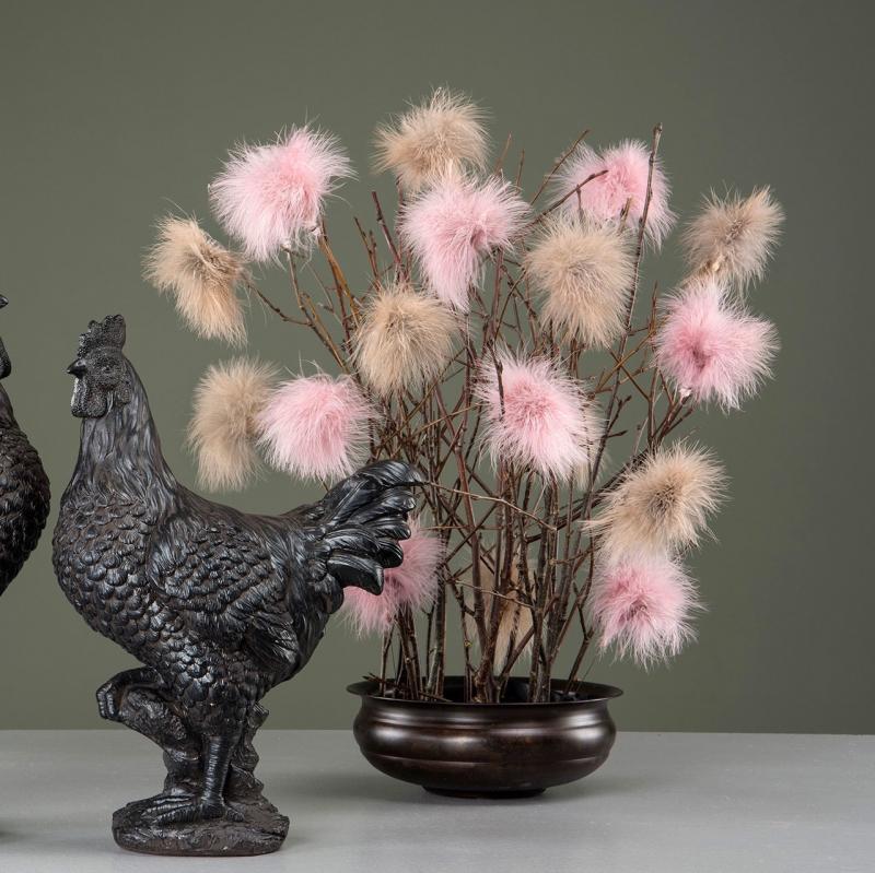 Exklusiva och vackra pudervippor i mullvad! Perfekta som dekoration i träd, kvistar, ris och blombuketter. Dessa fjädrar passar lika bra på bröllop och fester som till påsk. Låt er fantasi flöda - dekorera kvistar vid entrén till festlokalen eller vigseln. Placera en vacker gren över honnörsbordet eller varför inte dekorera blomsterarrangemangen på borden.