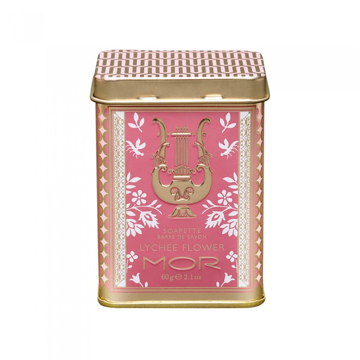 Inrymt i en vacker plåtask och inslagen i ett fint papper, skapar varje dyrbar Soapette ett dekadent skum som lämnar huden briljant uppfriskande. En bedårande, mörkrosa tvål med den underbara doften Lychee Flower - producerad med mousserande och söta lycheeblommor som är förenade med mogna bär, späda blomblad och en touch av grön skog.