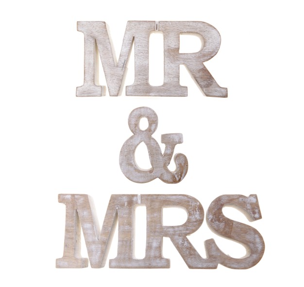 Denna 3-delade och fristående trädekoration i vintagestil bildar orden "Mr & Mrs". De vackra textskyltarna är tillverkad av massivt mangoträ, vilket gör dem oerhört rustika och romantiska. Perfekta att placera ovanför öppna spisen, på en skänk - ja varsomhelst! Den perfekta dekorationen på bröllopet eller varför inte som bröllopspresent.