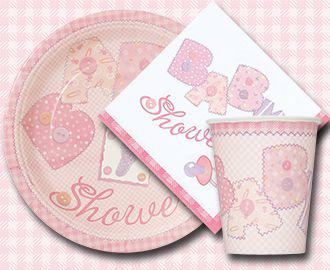 Sockersöta tallrikar med motiv i ljusrosa och texten "Baby Shower". Gulliga och praktiska att äta på och dessutom sparar du tid på att slippa diska. Perfekta för en Baby Shower eller dop!