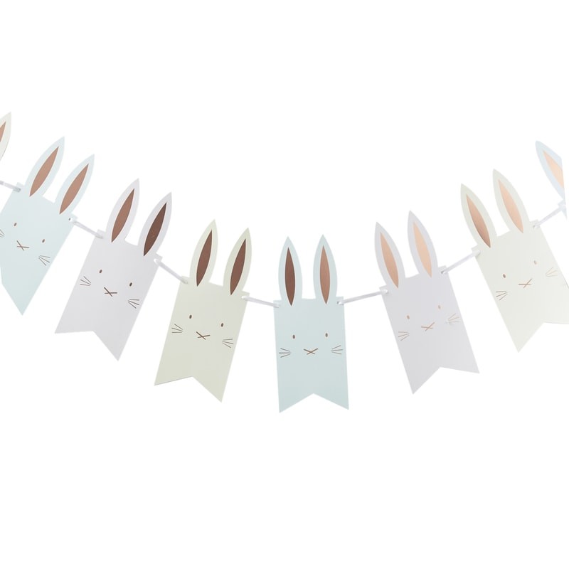 Addera lite vårfärger på kalaset eller påsktillställning med hjälp av denna unika vimpel i härliga pastellfärger och med öron!