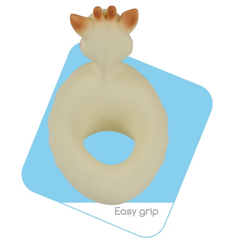 Precis som originalet Sophie la Girafe®, är denna badleksak gjord av 100% naturgummi, som härrör från saven från gummiträd och dekorerade med "livsmedelsgodkända" färger. Ditt barn kommer njuta av att bita på de olika delarna (öron, horn, ben etc.) på denna mjuka och flytande Sophie-giraff. Då leksaken är formad som en boj är den lätt för små händer att greppa. Den hygieniska produkten är vattentät, vilket säkerställer optimal torkning.