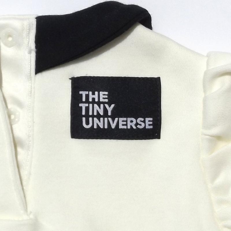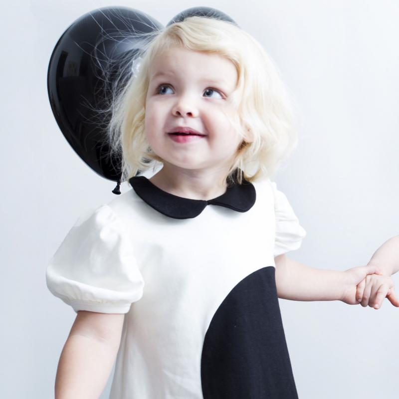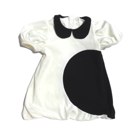 Klänningen är tillverkad i ett stycke som består av en vit klänning med en inbäddad svart cirkel. Den rätta outfiten för en liten stjärna!