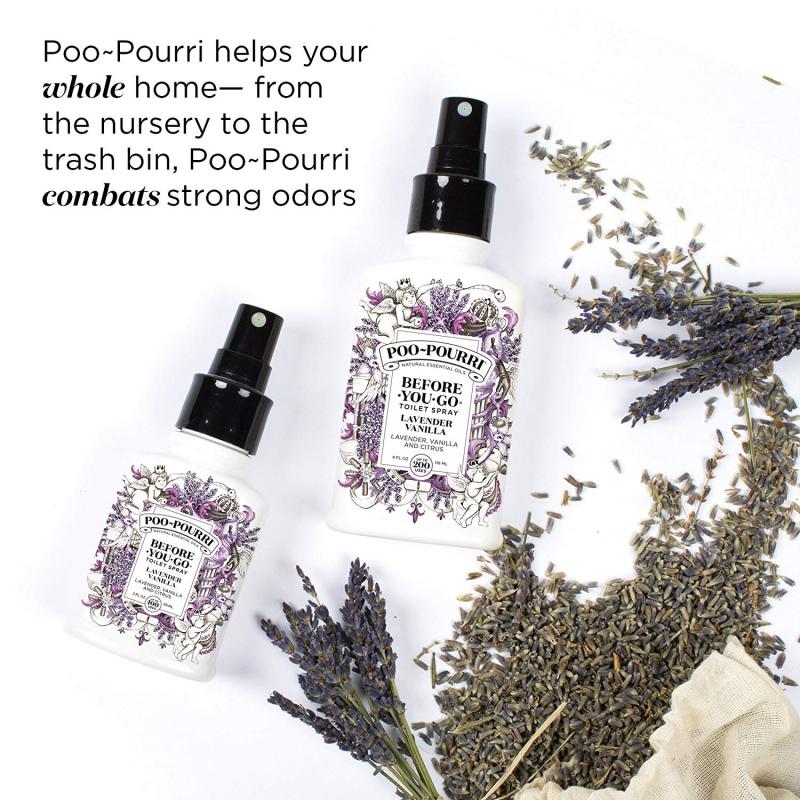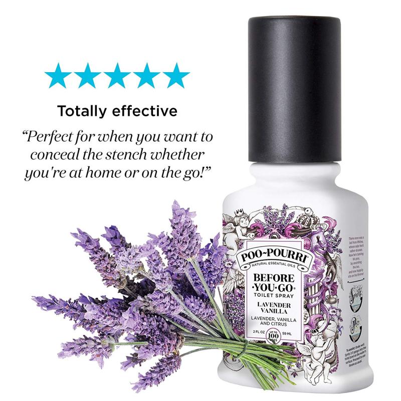Lavender Vanilla Poo-Pourri® är den perfekta presenten till din vän eller partner och dig själv. Den mediumstora flaskan med 59 ml gör sig perfekt hemma i stora badrummet och på gästtoaletten där alla kan ha glädje av den, eller i väskan när du är på språng. Slipp pinsamma episoder oavsett var du än befinner dig! Poo-Pourri® fungerar överallt - på jobbet, hotellrummet, flygplanet, after worken, på festen eller varför inte på gästtoaletten under bröllopet!